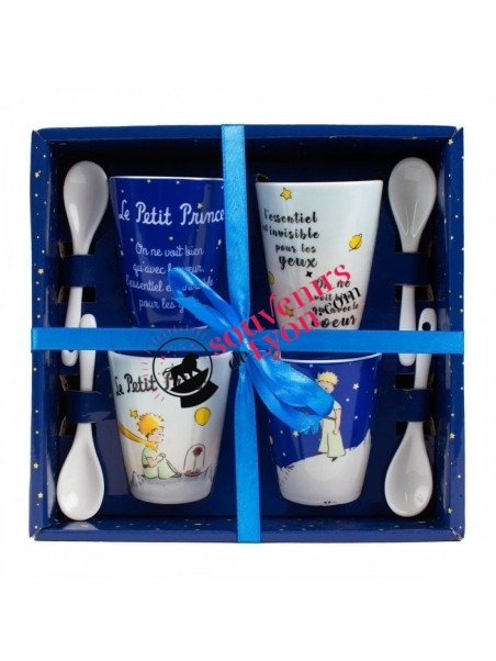 Set of 4 Mini Mugs and Spoons - The Little Prince (Airplane and Moon)