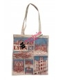 The tote bag also features the typical façades of Vieux Lyon, with their narrow windows, arcades, and Renaissance-inspired colors. The red lines highlight the warm, historical character of the district, while touches of light blue create subtle contrasts between shadow and light. These details evoke the unique atmosphere of cobblestone streets, hidden traboules, artisan shops, and lively squares.